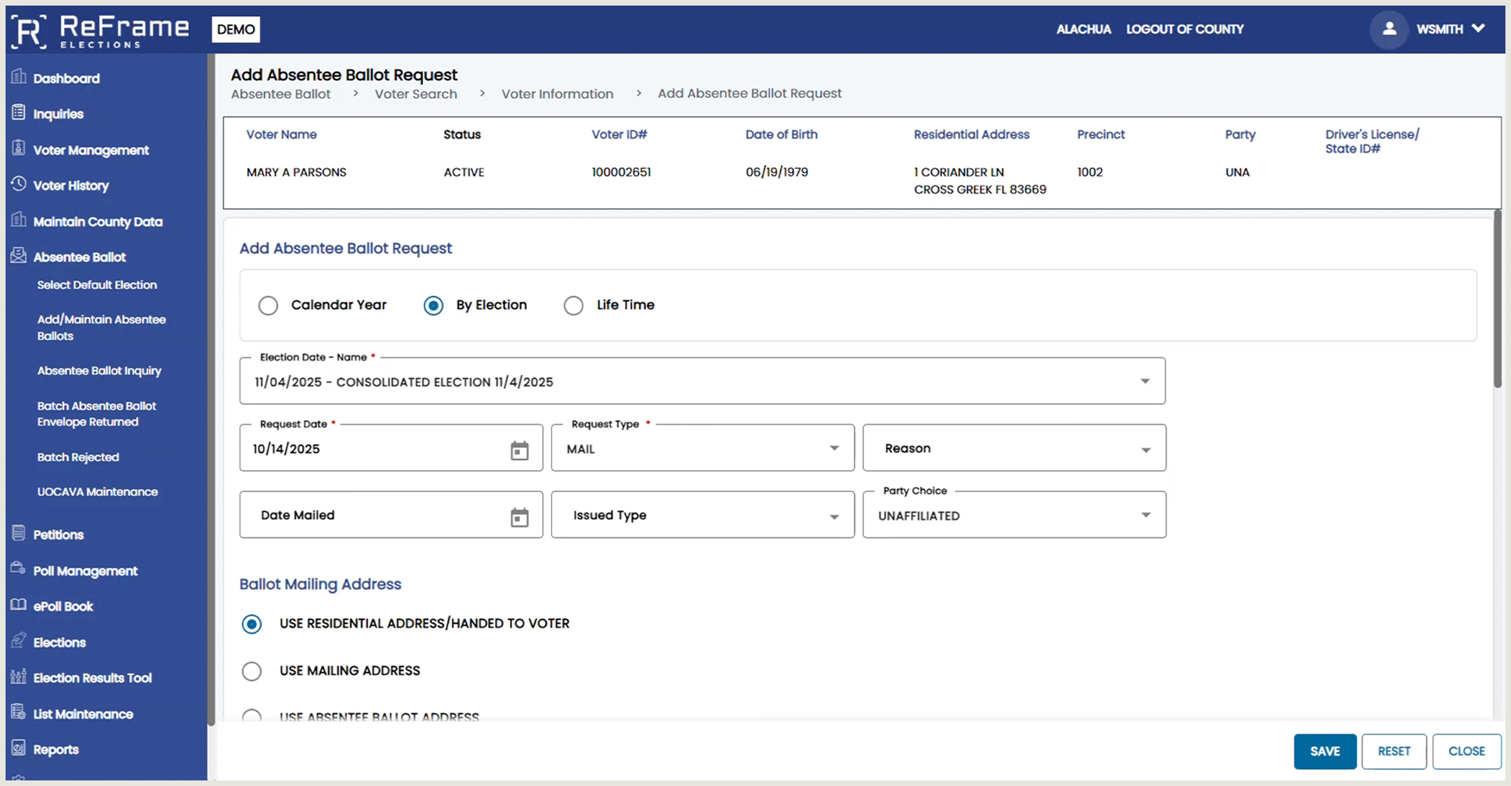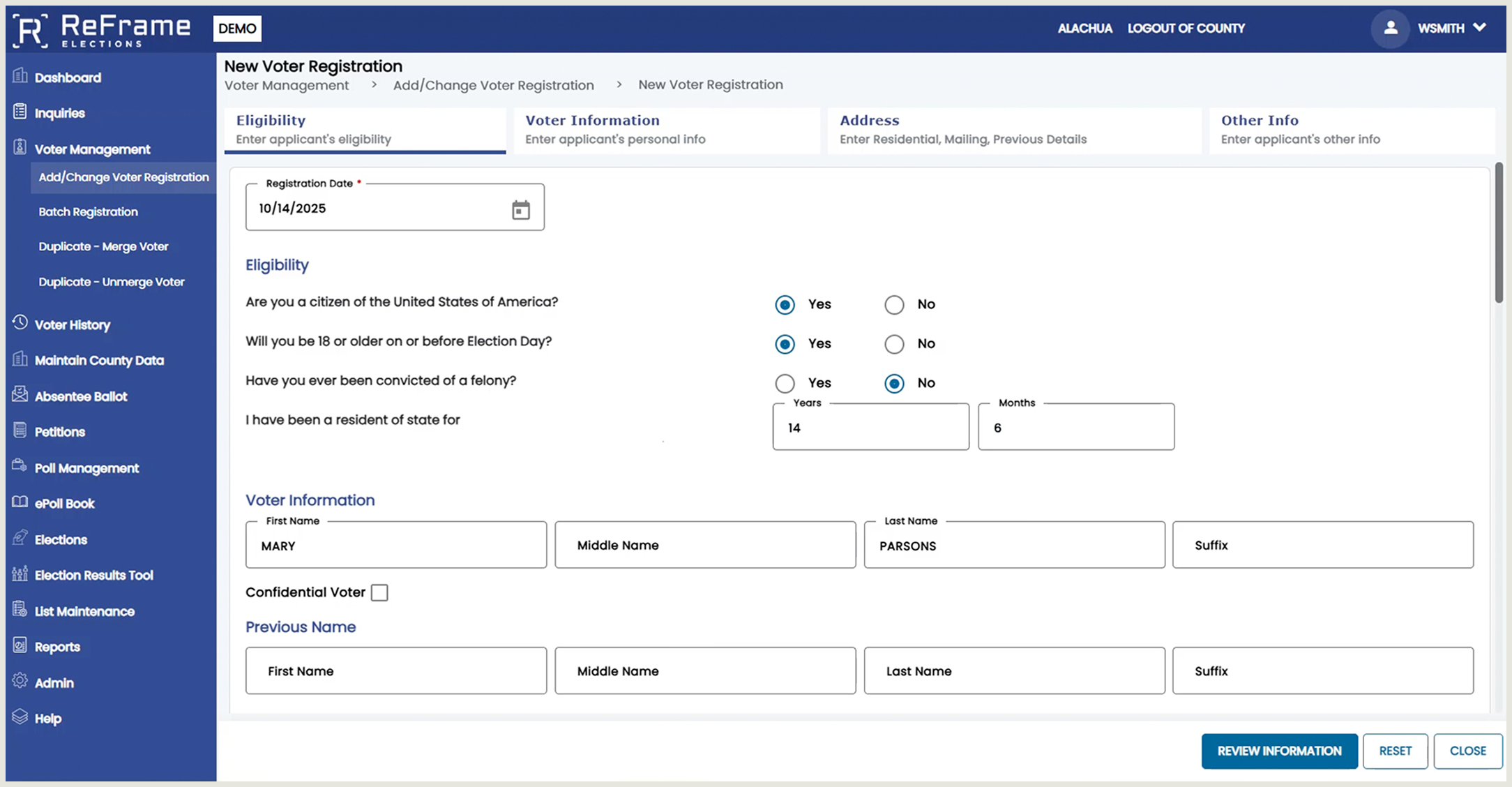 ReFrame Elections is not a one-size-fits-all product. It’s a configurable platform designed to meet your state’s specific needs. Whether you’re modernizing voter registration, managing absentee ballots, or publishing results, ReFrame gives you the tools to do it securely, efficiently, and with confidence.