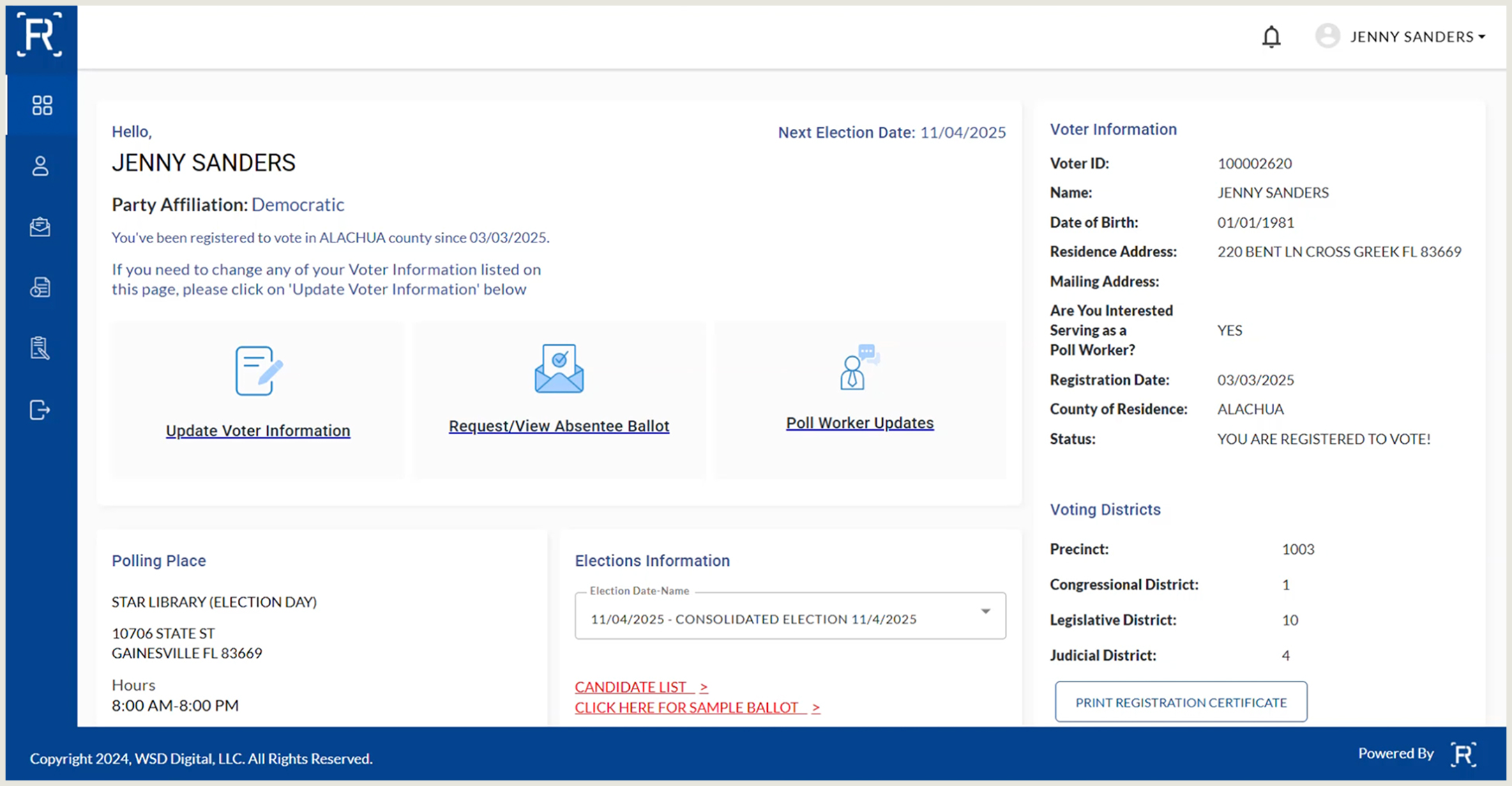 Enables voters to register or update their information online, with real-time validation and secure integration with state databases for identity verification.